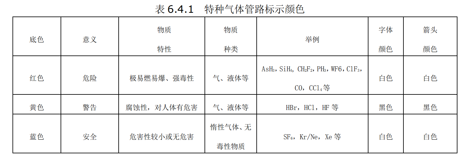 特種氣體管路標識要求: